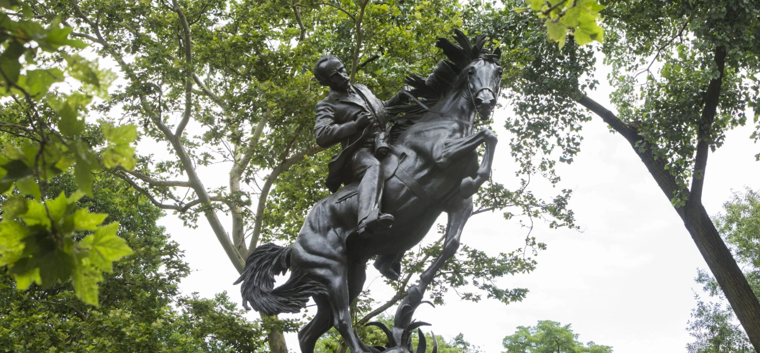 A statue in New York City’s Central Park depicts the moment Martí was mortally wounded at the Battle of Dos Ríos. SOURCE: Central Park Conservancy